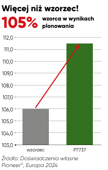 Podsumowując, P7737 to pewny wybór dla producentów, którzy oczekują od wczesnej odmiany niezawodności, elastyczności w doborze stanowiska oraz doskonałych wyników ekonomicznych. To odmiana stworzona, by odnieść sukces w każdych warunkach.