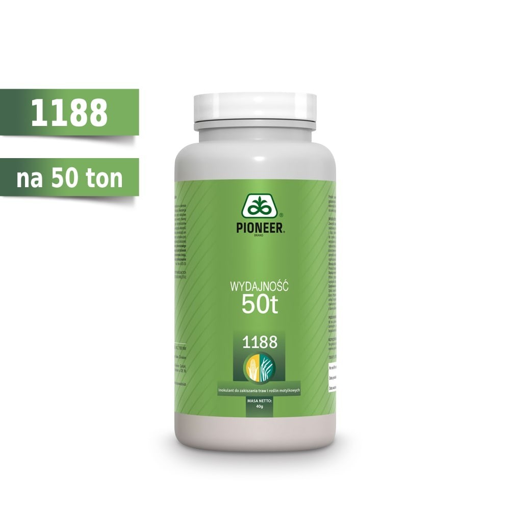 1188 to produkt przeznaczony do zakiszania traw, który zawiera 4 szczepy Lactobacillus plantarum oraz 2 szczepy Enterococcus faecium. Takie zestawienie mikroorganizmów pozwala zabezpieczyć zakiszany materiał w optymalny, kontrolowany sposób. Po ponad 15 latach prób i doświadczeń, Pioneer® 1188 jest wciąż najczęściej stosowanym inokulantem bakteryjnym, aktywnym i skutecznym w różnych sytuacjach, polecanym do pasz o zróżnicowanym stopniu wilgotności. Stosowanie produktu jest szczególnie rekomendowane podczas zbiorów traw w trudnych warunkach – między innymi do przygotowywania kiszonek z traw wiosennych lub drugiego bądź trzeciego pokosu. W przypadku trudnych warunków pogodowych, takich jak deszcz w trakcie przesuszania zielonki, warto rozważyć możliwość uzupełnienia brakującego cukru poprzez dodanie melasy.